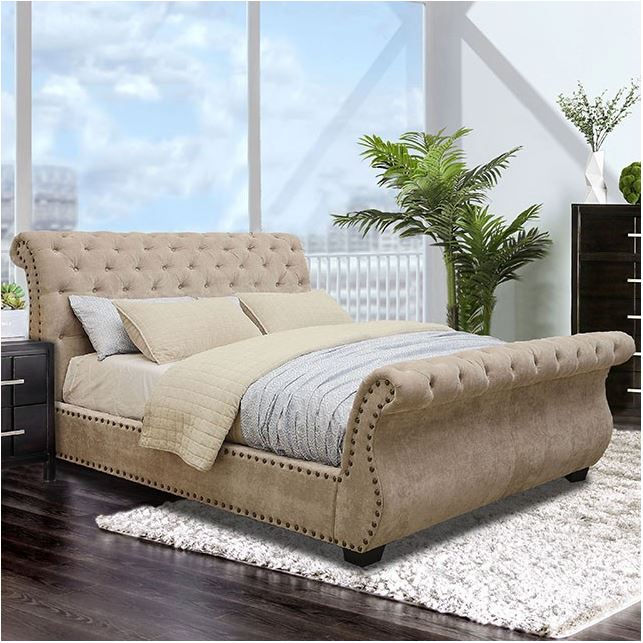 ESPIN - Linen Like Fabric Padded Head Board/ Nailhead Trim (Foundation Required)